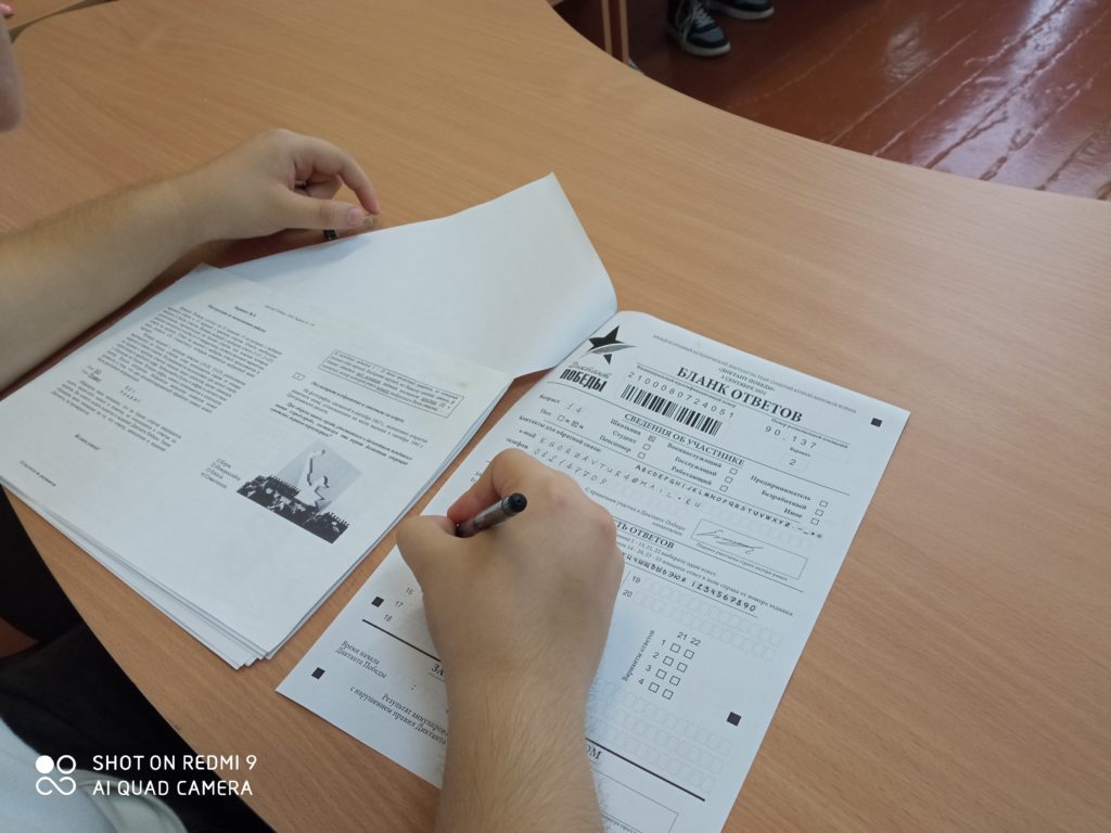 Учащиеся 9-11 классов нашей школы приняли участие во Всероссийском историческом диктанте на тему событий Великой Отечественной войны. Диктант Победы проводится в целях привлечения широкой общественности к изучению истории Великой Отечественной войны и повышения исторической грамотности.
