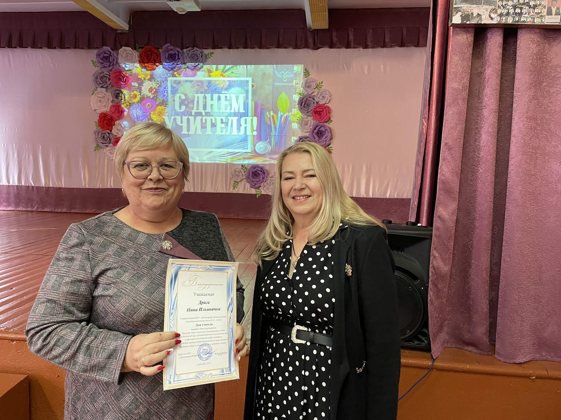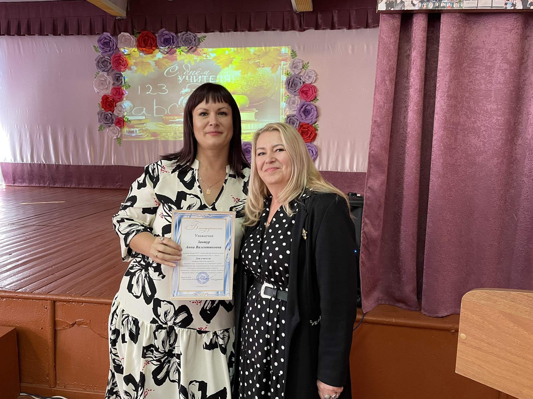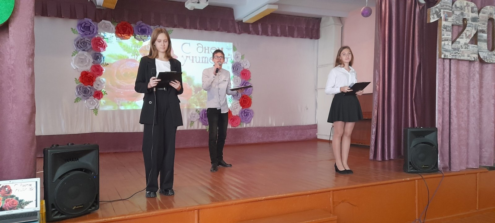 Замечательный праздничный концерт состоялся в актовом зале. На сцене блистали яркие, талантливые школьники. Прозвучали песни, посвященные преподавателям, педагоги закружились в ритме веселого танца, прозвучало много поздравительных слов.
