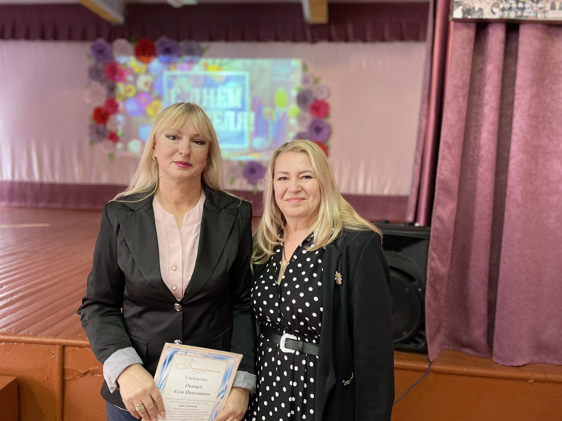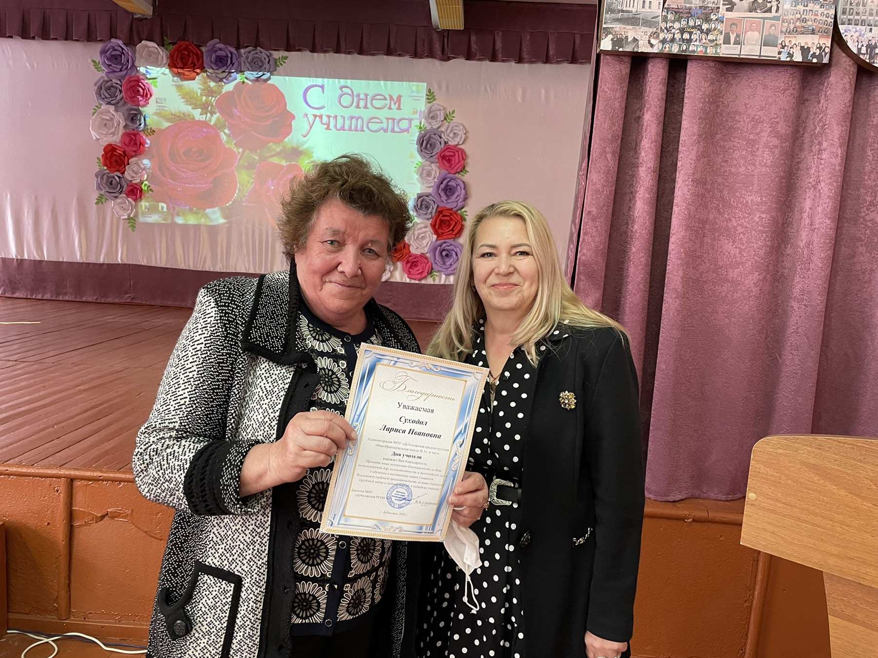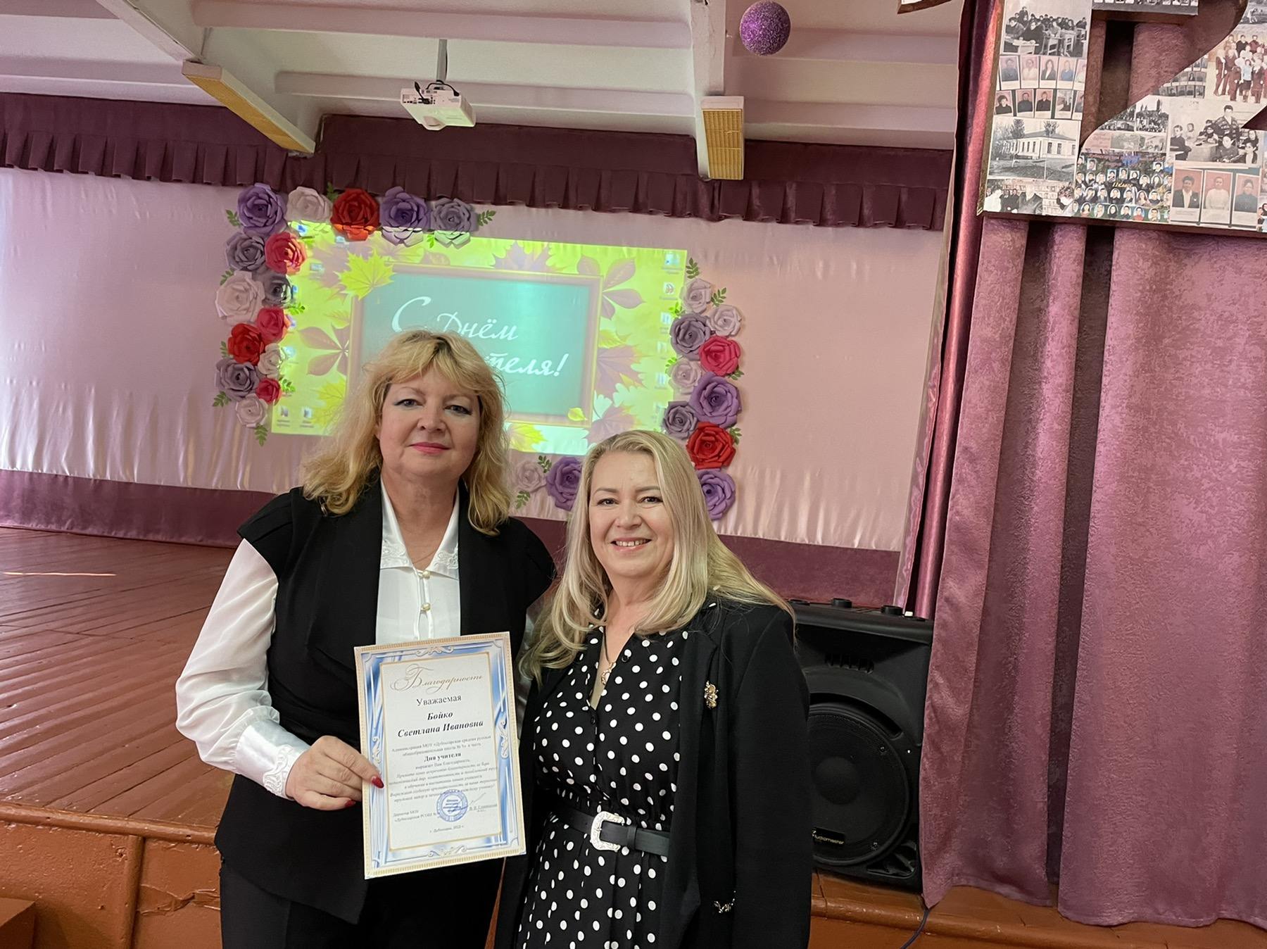 Замечательный праздничный концерт состоялся в актовом зале. На сцене блистали яркие, талантливые школьники. Прозвучали песни, посвященные преподавателям, педагоги закружились в ритме веселого танца, прозвучало много поздравительных слов.