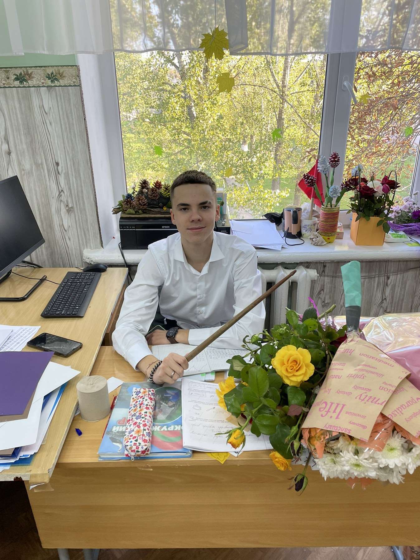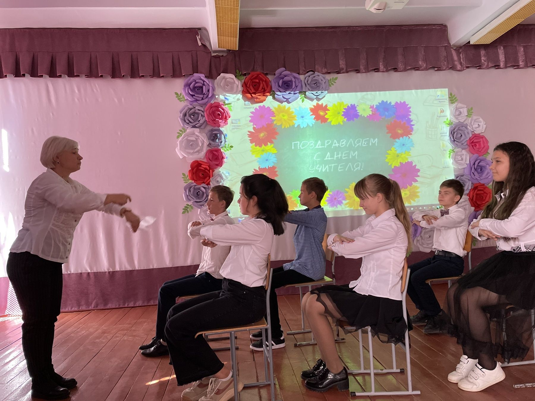 «С Днем учителя! С праздником!». Эти слова прозвучали при входе в школу 5 октября.