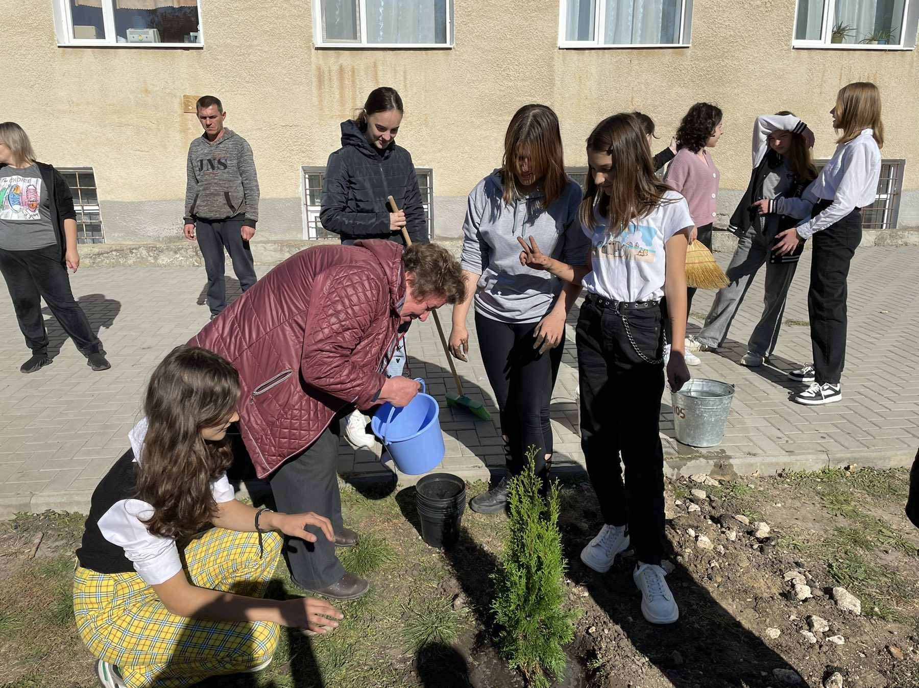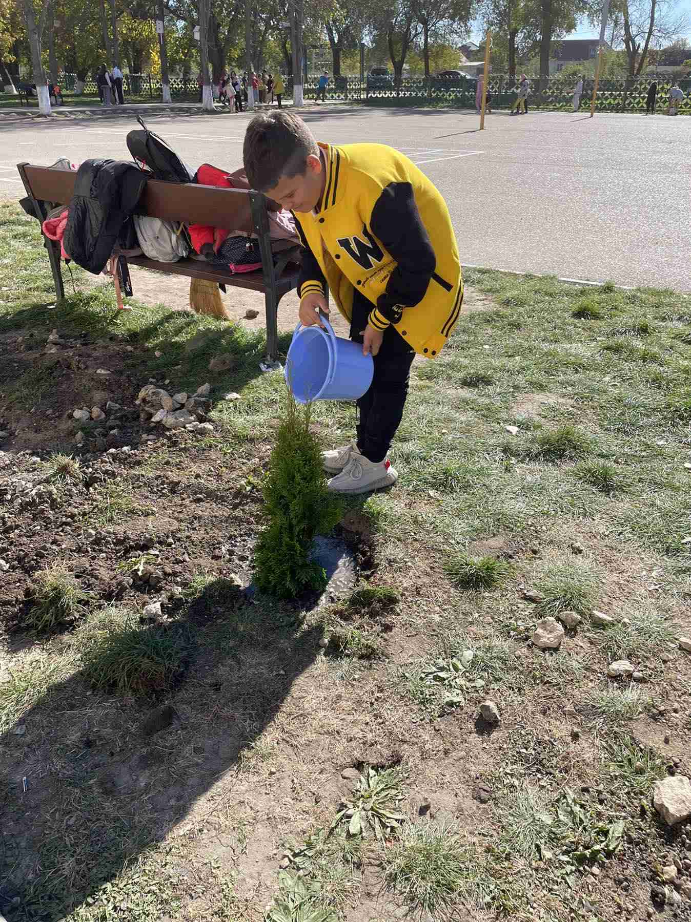 Сегодня во дворе нашей школы можно было наблюдать замечательную картину: учителя и ученики вооружившись различным садовым инвентарем, дружно облагораживали пришкольную территорию. Это проходил субботник приуроченный ко Дню нашего любимого города. Каждый класс убирал закрепленный за ним участок: ребята громадили, подметали, убирали листья. Ученики постарше под руководством педагогов выполняли ответственное задание- сажали вечнозеленые кустарники -туи, которые школа смогла приобрести за счет проведенной благотворительной ярмарки. Хорошая солнечная погода только способствовала прекрасному настроению и каждый ушел сегодня домой с осознанием, что сделано хорошее дело не только для школы, но и для родного города!