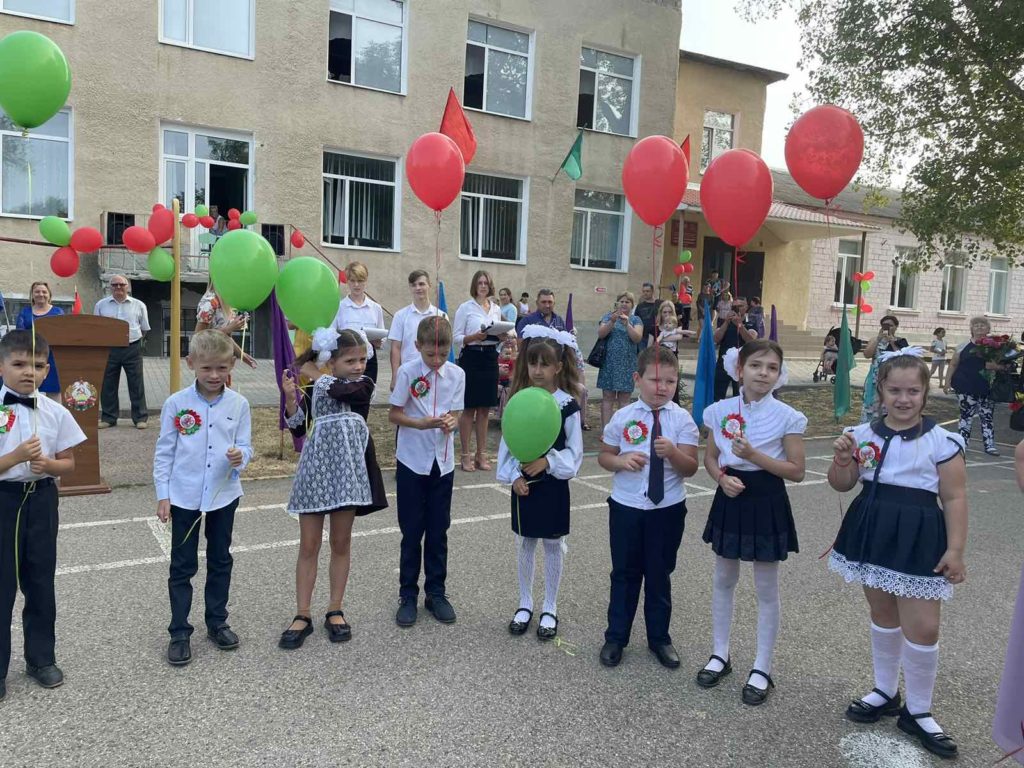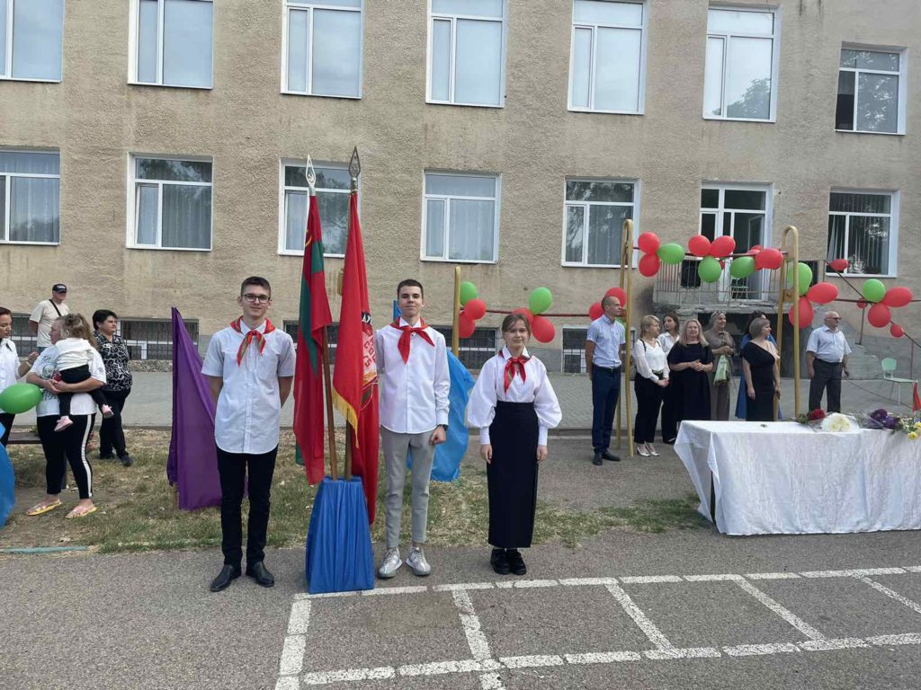 Нарядные ученики и ученицы с пестрыми букетами цветов, учителя и родители заполнили школьный двор. Звучит музыка, и все классы строятся на школьном дворе. Все застыли на торжественной линейке под звуки гимна Приднестровской Молдавской республики. Всё наполнено торжеством и гордостью, что ты частичка этого действа, этого великого праздника Дня Знаний. Ведь знание каждого из нас – это будущее каждого из нас, это будущее страны. Торжественная линейка объявляется открытой. По традиции первыми представляют малышей-первоклассников. Директор школы Сливинская Валентина Васильевна и гости поздравили учащихся школы с новым учебным годом, отметив, что учение — нелегкий, но радостный и увлекательный труд. Пусть новый учебный год станет для всех ярким и плодотворным, пусть будет наполнен творчеством, интересным и полезным общением, духовно, интеллектуально обогатит и ребят, и их педагогов.