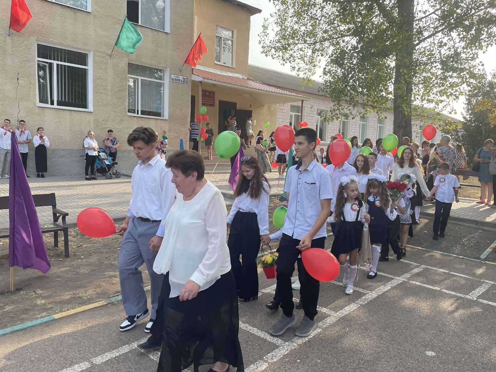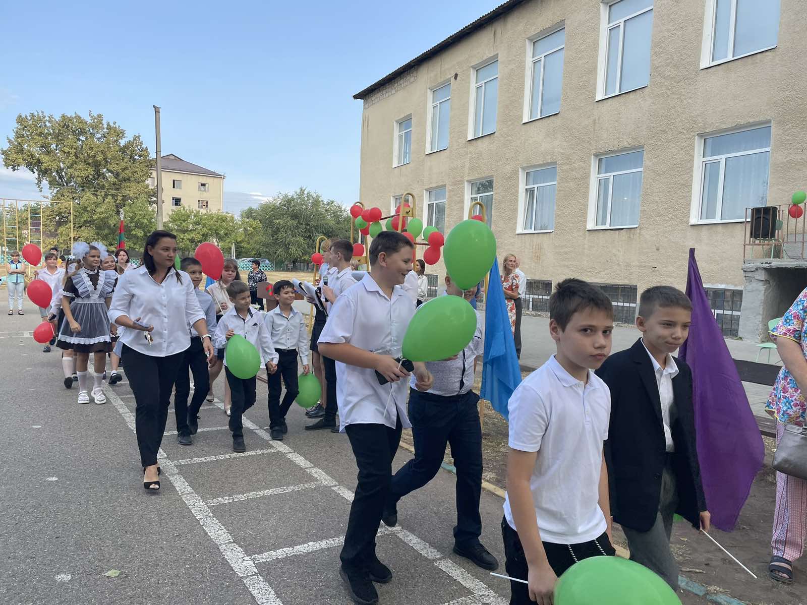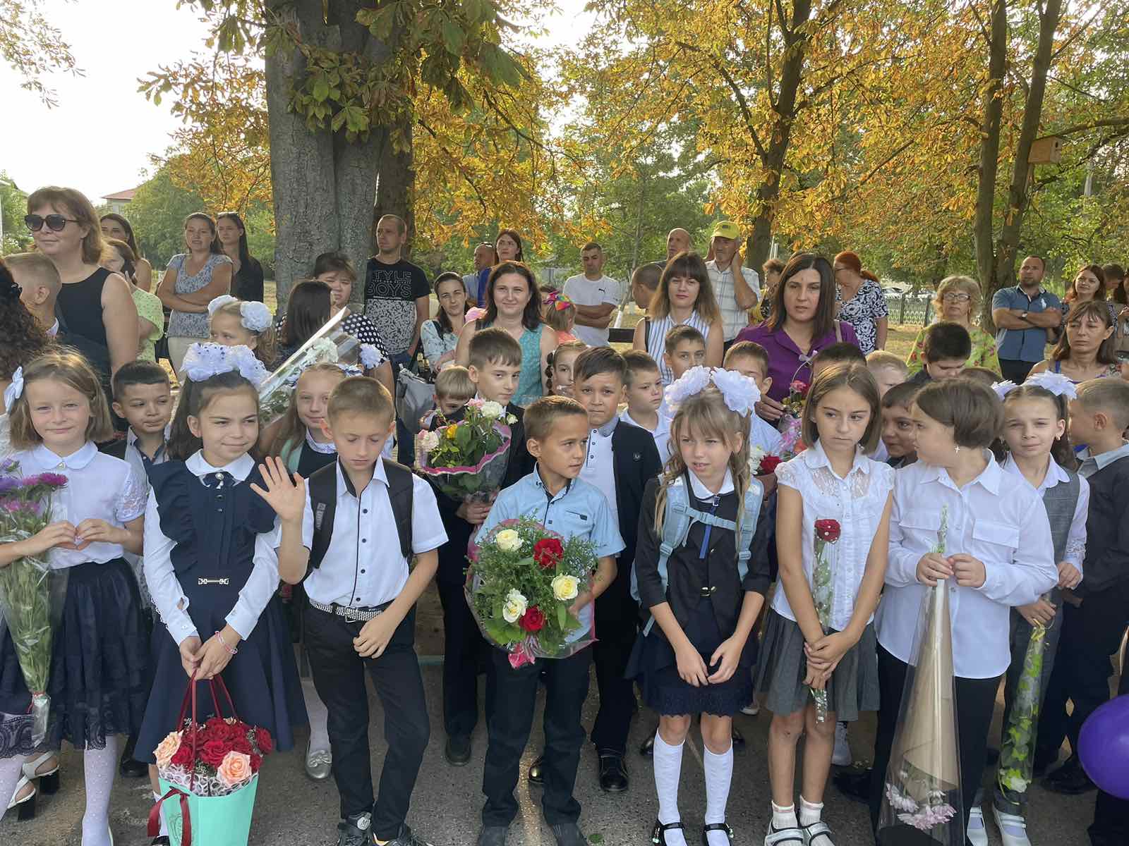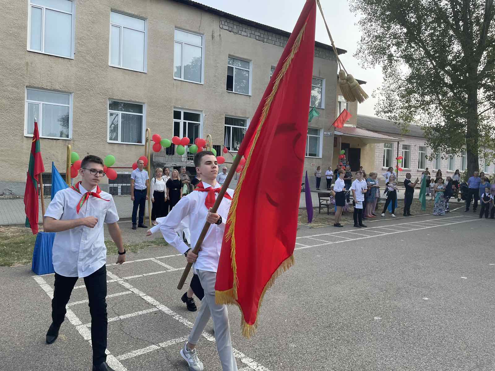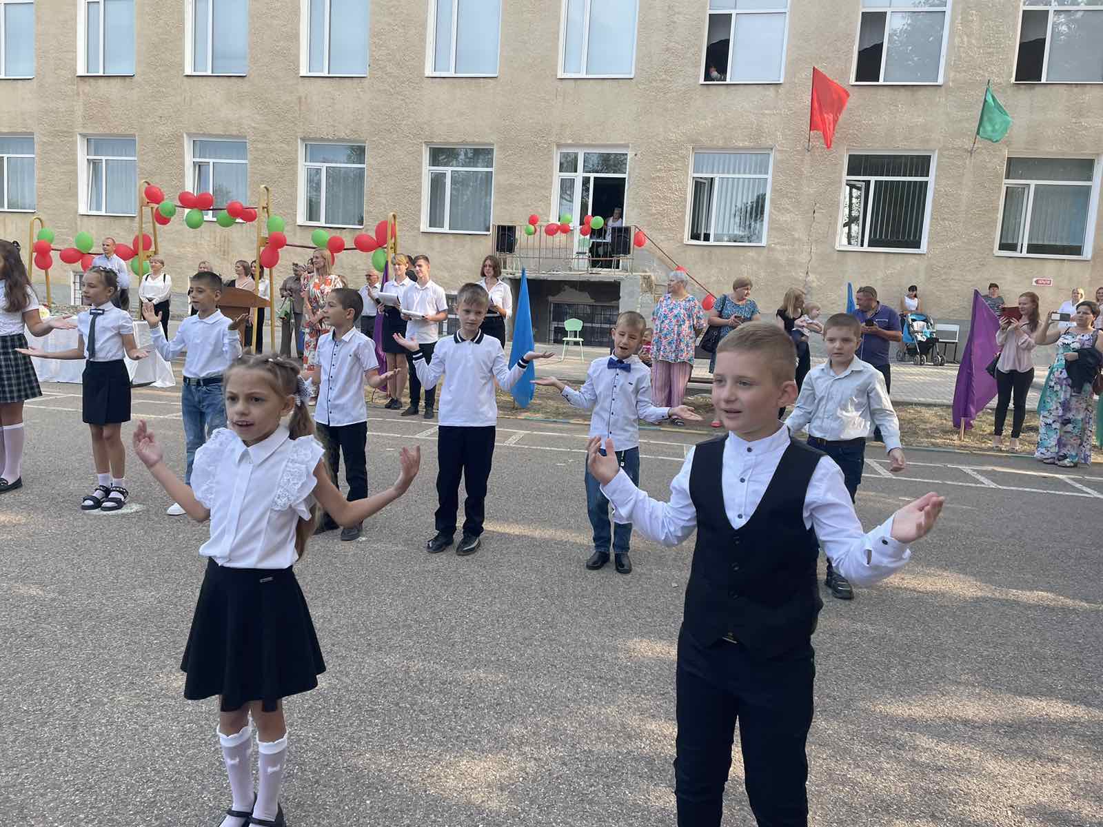 Нарядные ученики и ученицы с пестрыми букетами цветов, учителя и родители заполнили школьный двор. Звучит музыка, и все классы строятся на школьном дворе. Все застыли на торжественной линейке под звуки гимна Приднестровской Молдавской республики. Всё наполнено торжеством и гордостью, что ты частичка этого действа, этого великого праздника Дня Знаний. Ведь знание каждого из нас – это будущее каждого из нас, это будущее страны. Торжественная линейка объявляется открытой. По традиции первыми представляют малышей-первоклассников. Директор школы Сливинская Валентина Васильевна и гости поздравили учащихся школы с новым учебным годом, отметив, что учение — нелегкий, но радостный и увлекательный труд. Пусть новый учебный год станет для всех ярким и плодотворным, пусть будет наполнен творчеством, интересным и полезным общением, духовно, интеллектуально обогатит и ребят, и их педагогов.
