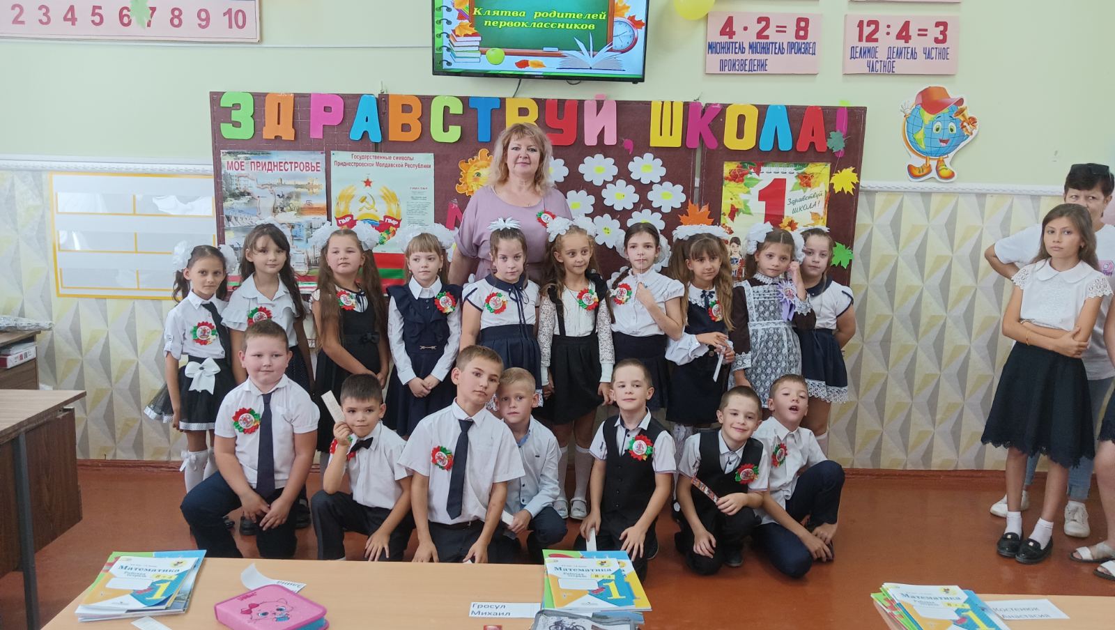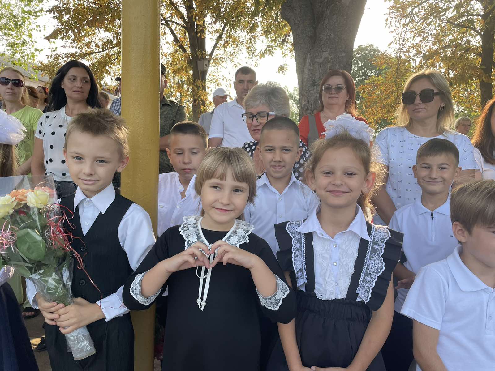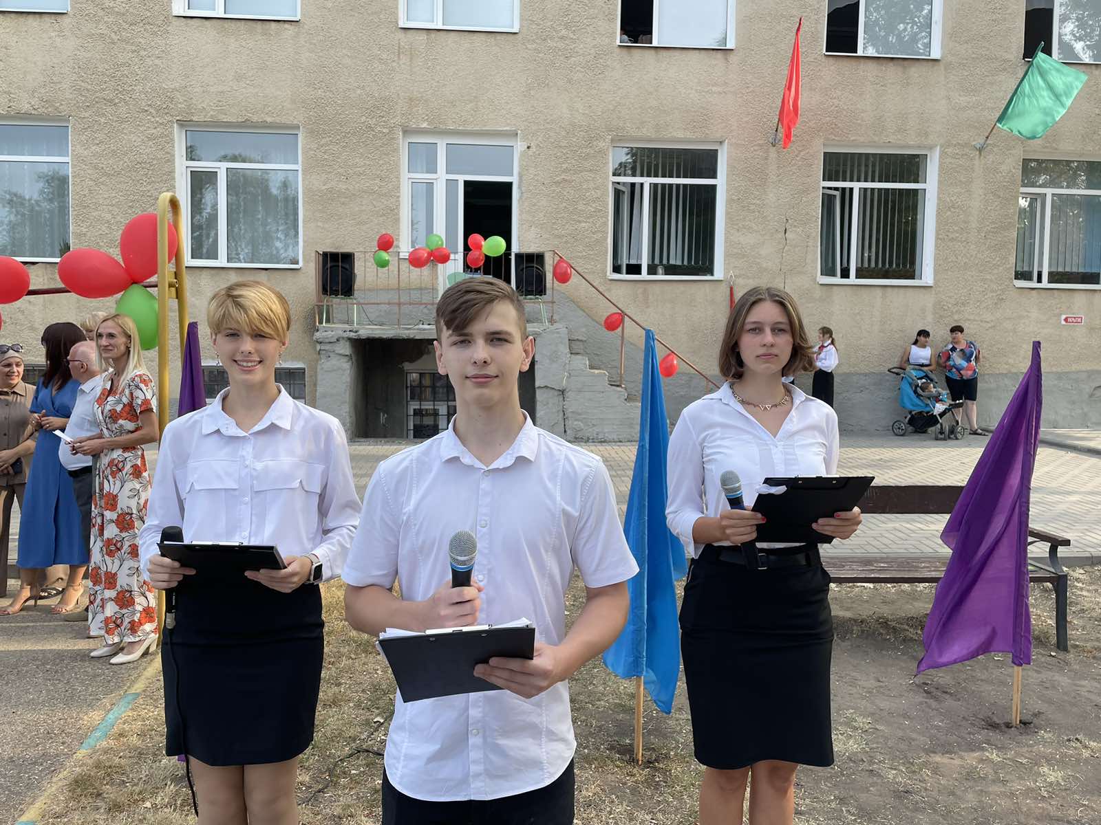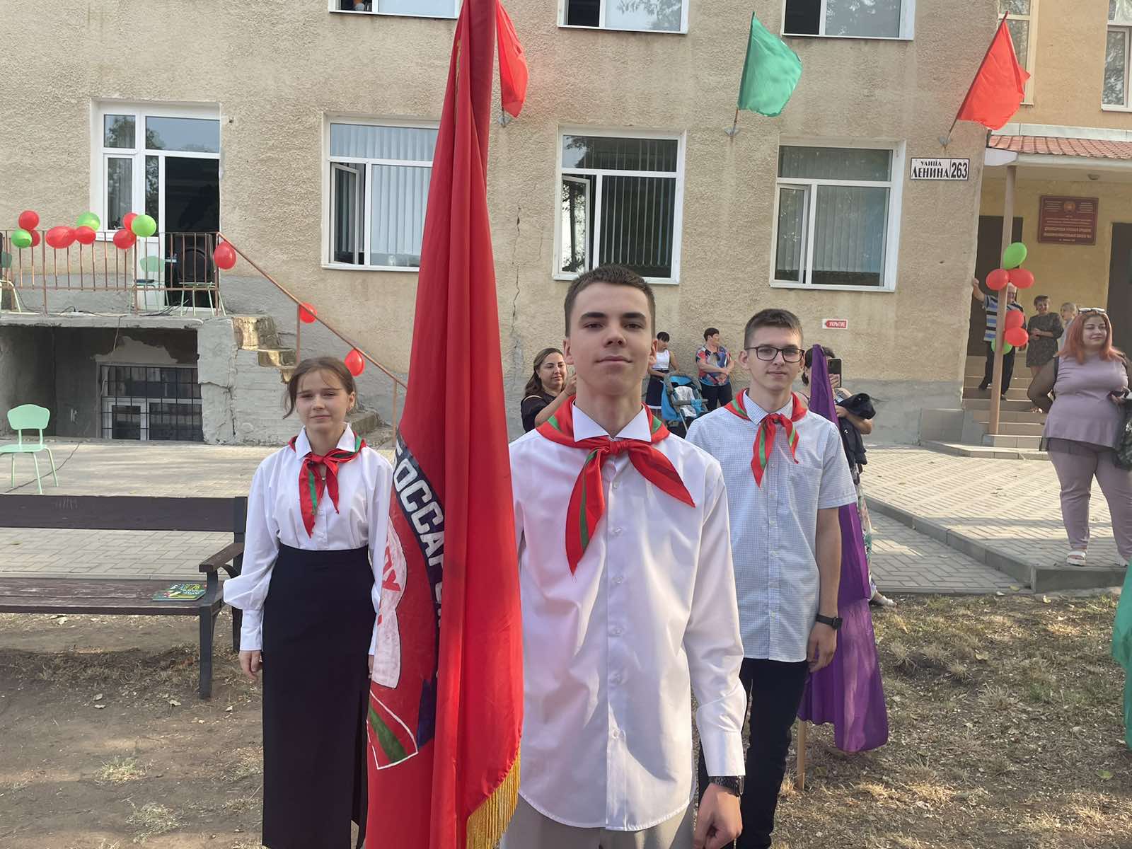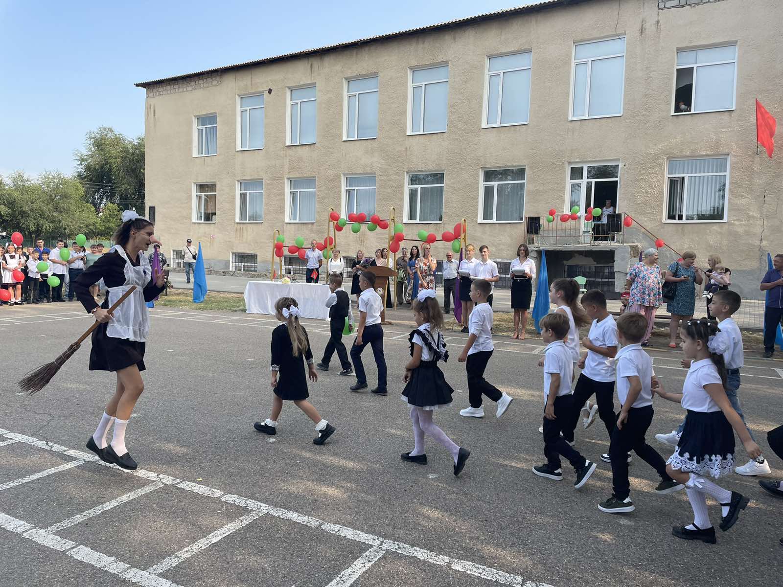 Нарядные ученики и ученицы с пестрыми букетами цветов, учителя и родители заполнили школьный двор. Звучит музыка, и все классы строятся на школьном дворе. Все застыли на торжественной линейке под звуки гимна Приднестровской Молдавской республики. Всё наполнено торжеством и гордостью, что ты частичка этого действа, этого великого праздника Дня Знаний. Ведь знание каждого из нас – это будущее каждого из нас, это будущее страны. Торжественная линейка объявляется открытой. По традиции первыми представляют малышей-первоклассников. Директор школы Сливинская Валентина Васильевна и гости поздравили учащихся школы с новым учебным годом, отметив, что учение — нелегкий, но радостный и увлекательный труд. Пусть новый учебный год станет для всех ярким и плодотворным, пусть будет наполнен творчеством, интересным и полезным общением, духовно, интеллектуально обогатит и ребят, и их педагогов.
